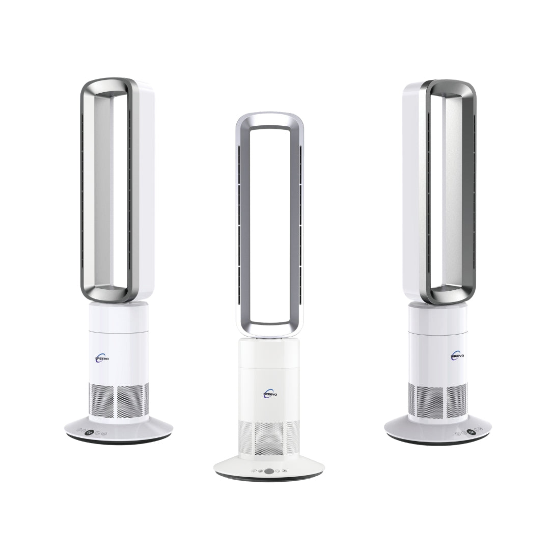 Experience ultimate comfort and air purification with the 2-in-1 Cool+Hot Bladeless Fan. It offers year-round use, 10 wind speeds, wide-angle airflow, sleep timer, and powerful heating. Enjoy safety features, an intelligent thermostat. Upgrade your comfort today!